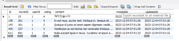 -> 해당 테이블 우클릭 - Table Data Export Wizard 클릭