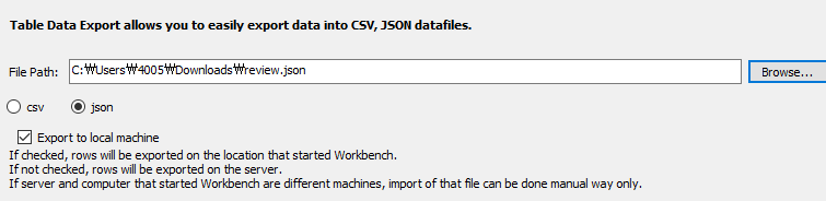-> 저장할 Path 선택, 확장자 csv or json 선택한 후 Next 클릭 - finish 클릭