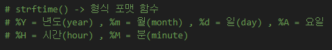 날짜와 시간은 strftime() -> 형식 포맷 함수를 사용한다.