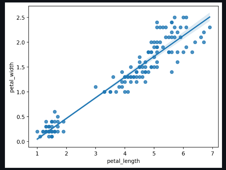 sb.regplot(data=df, x="petal_length", y="petal_width")