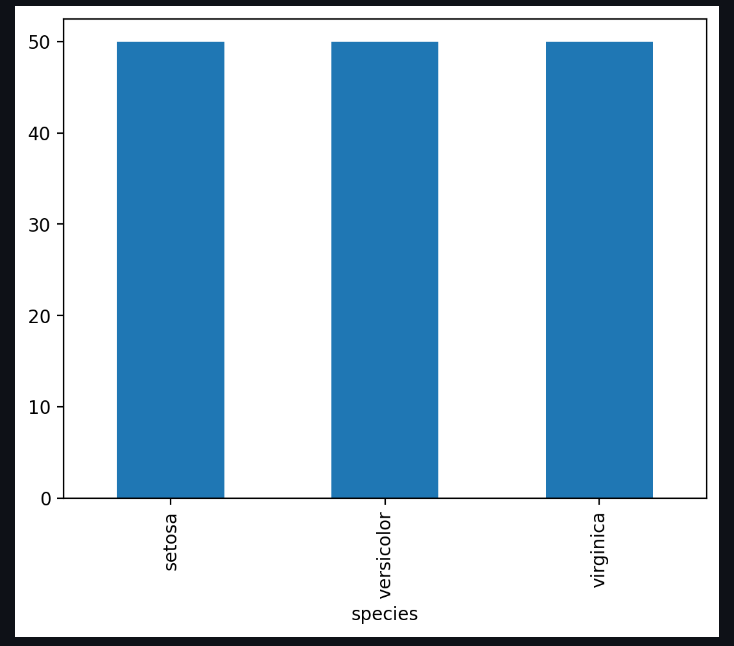 df["species"].value_counts().plot(kind="bar") # kind = barh 하면 y축