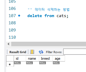-> 조건을 안주면 테이블 안 데이터를 모두 삭제한다.
